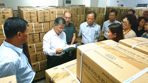 8月27日,省经济和信息化委主任涂高坤率队前往广弘医药有限公司(以下简称“广弘医药”)检查省级药品储备工作。副主任吴育光,广东省商贸控股集团有限公司董事长林位超,委相关处室、广东省医药集团、广弘医药有限公司等参加检查。