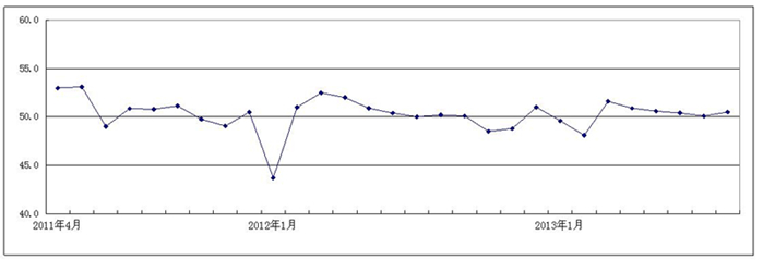 图1 2011年4月-2013年8月广东省重点企业PMI趋势图