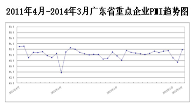 图1 2011年4月-2014年3月广东省重点企业PMI趋势图