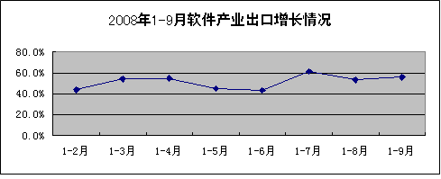 1-9月,我国软件出口105亿美元,同比增长55.8%,增幅比收入高23个百分点。其中,软件外包服务出口9.3亿美元,同比增长50.2%,占软件出口的比重为8.9%。