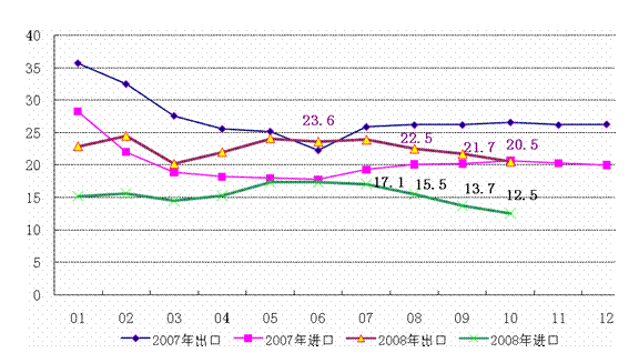 图12007-2008年各月电子信息产品进出口增幅