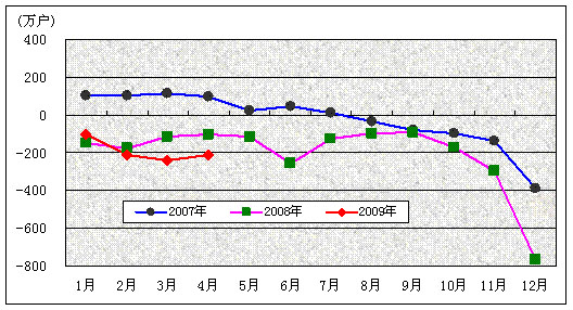 2009年1-4月,固定本地电话通话量比上年同期下降11.4%,而移动本地电话通话时长比上年同期增长17.2%。
