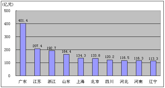 图12. 2009年1-4月电信主营业务收入排名前十名的省份