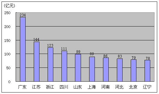 图12. 2009年1-9月份电信主营业务收入排名前十名的省份