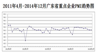 图1 2011年4月-2014年12月广东省重点企业PMI趋势图