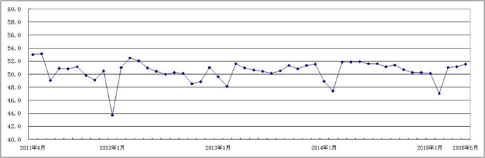 图1 2011年4月-2015年5月广东省重点企业PMI趋势图