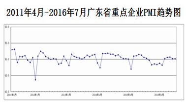 图1 2011年4月-2016年7月广东省重点企业PMI趋势图