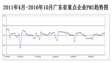 图1 2011年4月-2016年10月广东省重点企业PMI趋势图