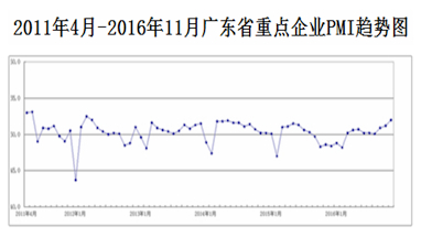图1 2011年4月-2016年11月广东省重点企业PMI趋势图