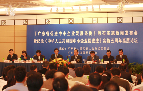 《广东省促进中小企业发展条例》颁布实施新闻发布会暨纪念《中华人民共和国中小企业促进法》实施五周年高层论坛活动举行