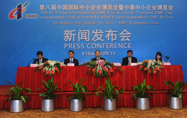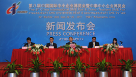 8月30日上午,第八届中国国际中小企业博览会暨中泰中小企业博览会新闻发布会在北京国际饭店召开。中博会组委会副主任、工业和信息化部总工程师朱宏任,中博会组委会副主任兼执行主任、广东省人民政府副省长陈云贤,泰国中小企业促进署外事局局长瓦赤拉·交科出席会议。会议由中博会组委会秘书长、广东省人民政府副秘书长林英主持。组委会副秘书长、工信部中小企业司司长郑昕,广东省筹办会办公室主任、广东省中小企业局局长张文献等有关人员,以及来自中央电视台、人民日报、经济日报等新闻媒体的80多名记者参加了新闻发布会。