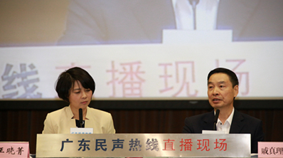 在广东人民广播电台直播前,于11:00--11:30时,我委市场体系建设处罗房枢处长和信息化推进处谭峻峰副处长在珠江经济广播电台上线直播,并就单用途商业预付卡、省市县三级网上办事大厅建设、智能制造、个人信息技术应用等情况进行了介绍说明和解答了听众朋友提出的相关问题。