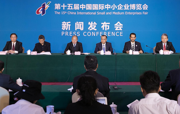 5月3日,第十五届中国国际中小企业博览会(以下简称“第十五届中博会”)新闻发布会在北京召开。中博会组委会副主任、工业和信息化部副部长王江平,中博会组委会副主任兼执行主任、广东省人民政府副省长陈良贤,中博会组委会副秘书长、国家市场监督管理总局个体私营经济监督管理司司长燕军,阿联酋驻华副大使沙林·达哈尼,阿联酋经济部驻华商务处全权公使巴德尔·穆沙利赫,联合国工业发展组织驻京副代表马健出席发布会。