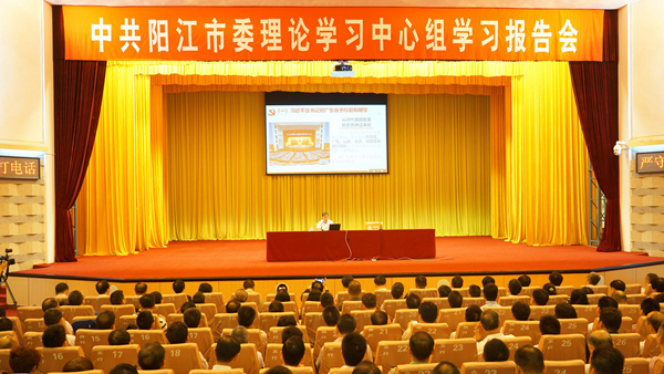 4月25日上午,习近平总书记重要讲话精神省委宣讲团成员,省经济和信息化委党组书记、主任涂高坤在阳江市委理论学习中心组学习报告会上作习近平总书记重要讲话精神专题辅导报告。报告会由阳江市委书记陈小山主持,阳江市委理论学习中心组成员,各县(市、区)四套班子成员,市直各单位、中央和省驻阳江有关单位干部共计700多人参加了报告会。