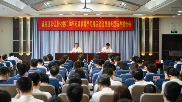8月21日上午,省经济和信息化委召开2018年纪律教育学习月活动动员暨专题辅导报告会,部署开展纪律教育学习月活动,委党组书记、主任涂高坤出席会议并作纪律教育专题辅导报告,巡视员李向明主持会议并作工作部署。委领导同志,机关全体党员干部、委属单位中层以上干部共200余人参加会议。