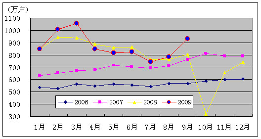 图3. 2006-2009年移动电话用户各月净增比较
