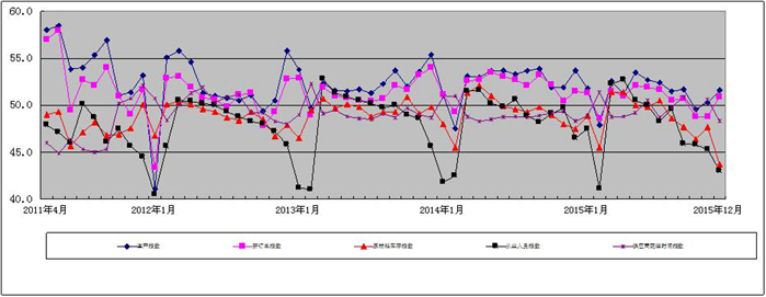 图2 2011年4月-2015年12月广东省重点企业PMI分项指数趋势图