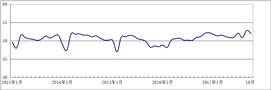图1 2013年1月-2017年10月广东省制造业PMI趋势图