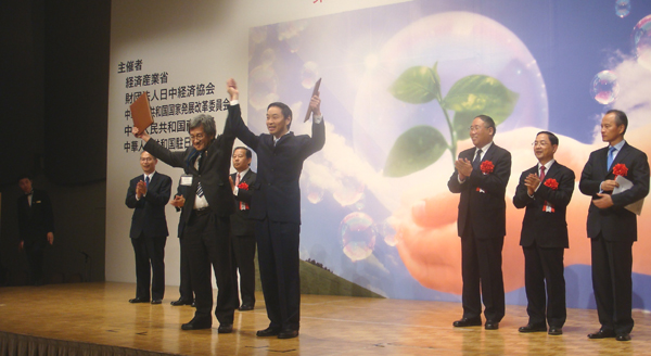 这次论坛中日双方高度重视,中方组织了300人的大规模代表团参加此次论坛。广东省与与兵库县循环型城市合作备忘录签约是此次中日论坛重要内容,也是此次论坛的亮点之一。首先,我省与兵库县循环型城市建设合作备忘录签约项目得到国家的高度重视,在18个签约项目中,我省被列为第一个上台代表中方与日方签约项目。其次,我省与兵库县签署的《合作备忘录》是此次论坛唯一两国地方政府间的合作项目,成果显著。第三,我委戚真理巡视员与日本兵库县环境管理局菊井顺一局长先生签署《合作备忘录》后的庆祝方式也十分特别,双方在签署《合作备忘录》后都兴致勃勃的举起双手向全场观众示意,也标志着广东与日本兵库县循环型城市建设的合作进入了一个实质性阶段。