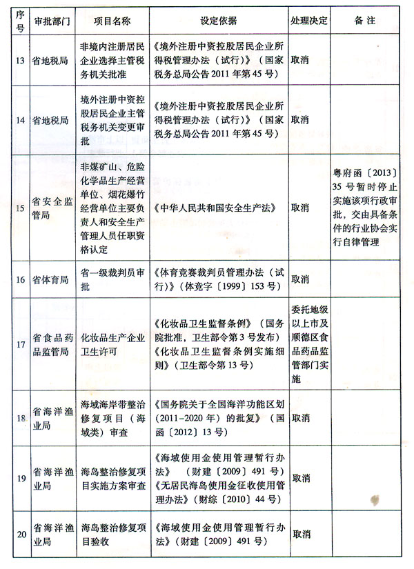附件:1.广东省人民政府决定取消和下放管理层级的行政审批项目目录(共计24项)