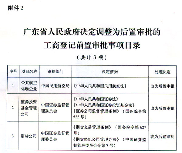 2.广东省人民政府决定调整为后置审批的工商登记前置审批事项目录(共计3项)