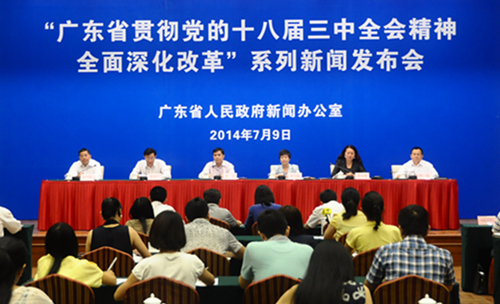7月9日,省政府新闻办召开广东省贯彻十八届三中全会精神、全面深化改革系列主题新闻发布会,发布《宽带广东发展规划(2014-2020年)》。省经济和信息化委副主任邹生担任主发布人,省政府新闻办常务副主任张知干主持发布会,省通信管理局副局长黄学敏、中国电信广东公司副总经理唐永丽、中国移动广东公司副总经理温乃粘、中国联通广东公司副总经理傅强出席新闻发布会并回答记者的有关提问。